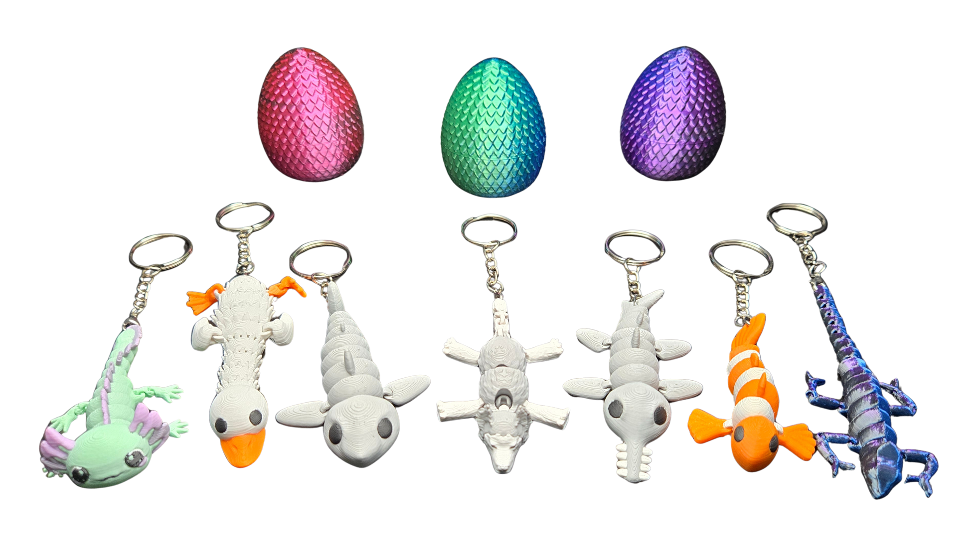 Meet the Key Critters - Clownfish, a fun 3D printed keychain that comes nestled inside a colorful 3D printed egg. While the egg’s color is a surprise each time, the clownfish itself is always in a charming mix of Orange, White, and Black. Perfect for adding a playful touch to kids’ backpacks or brightening up your keys, these durable little pals are ready to accompany you on all your adventures!